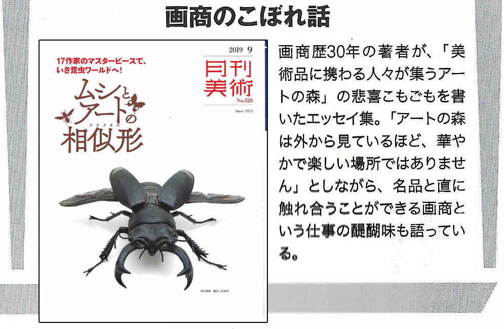 エッセイ「画商のこぼれ話」刊行のお知らせ(重版決定) — 2019年7月3日 種田ひろみ著「画商のこぼれ話」(作品社)アマゾンレビューなどで多くの反響頂いております。好評発売中。 現在発売中の雑誌「ダ・ヴィンチ」10月号に書評が掲載されました。「旬の書評欄~現代アートをたしなむ」のページです。 《… 詳細をみる