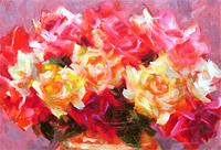 パリを中心にした欧州の街や、バラの絵を多く制作。光風会展、日展に多数出品。