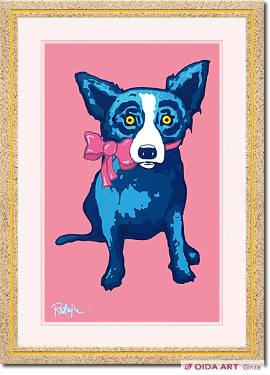 愛犬ティファニーを描き続けたジョージ・ロドリーゲ。鮮やかなピンクの背景に米国では縁起の良い色とされている青と黄色で描かれ、ピンクのリボンがとても可愛らしい作品です。