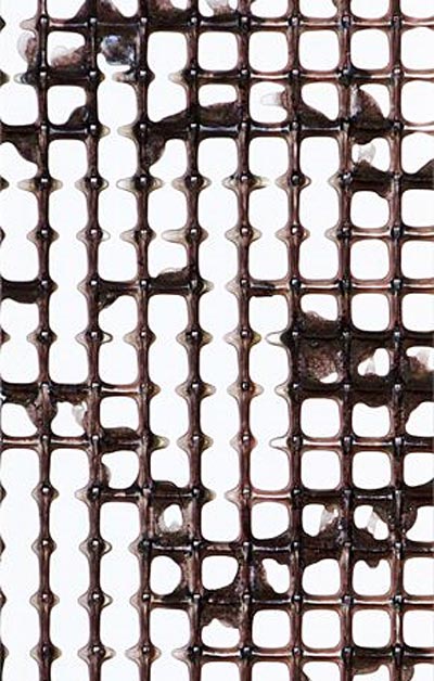「GRID」シリーズとはユポ(ポリプロピレン製合成紙)にアクリル絵の具で描かれる立体作品で、作品との実際の距離感で、見る者にデジタルとアナログの異なる印象を与えてくれます。