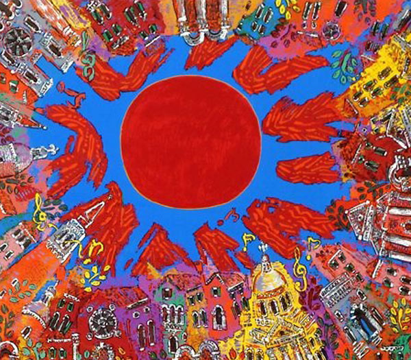 大きく描かれた太陽からはエネルギッシュさを感じさせます。ア・フレスコの古典技法を習得するために訪れたヴェネツィアの海と光、そして解放的な自由さが、画面全体から溢れています。