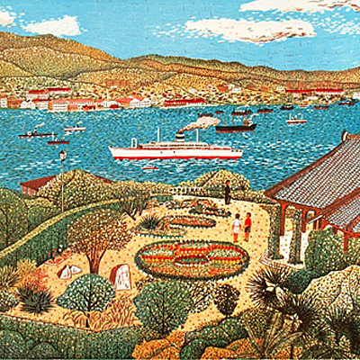 1934年 千葉県の養護施設「八幡学園」に入園。貼絵の手ほどきを受け、その特異な才能が発見される。