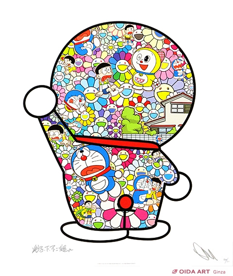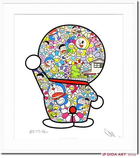 - 下部右に村上隆サイン、下部左に藤子・F・不二雄のコールドスタンプあり、 購入価格はシート本体のみ額装代は別途