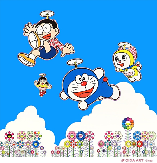 - 下部右に村上隆サイン、下部左に藤子・F・不二雄のコールドスタンプあり、 購入価格はシート本体のみ額装代は別途