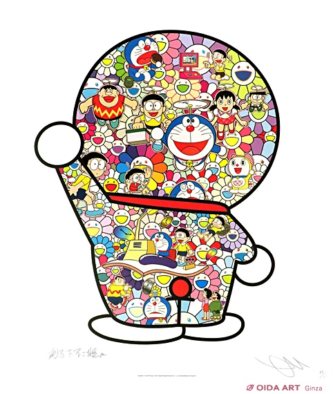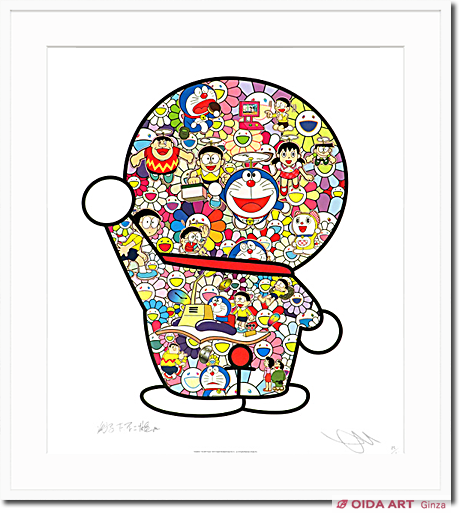 - 下部右に村上隆サイン、下部左に藤子・F・不二雄のコールドスタンプあり、 購入価格はシート本体のみ額装代は別途