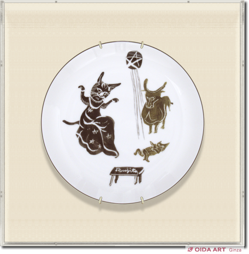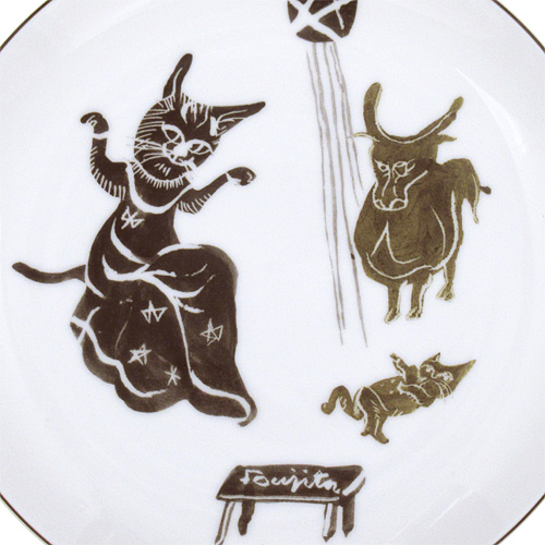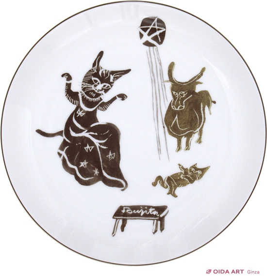 作品名:絵皿(猫と牛)
