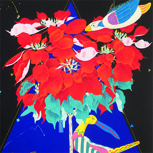 1994年 鎌倉の鶴が岡八幡宮、斎官貴賓室床の間壁画完成披露。伊藤彬、中野嘉之、林功らと「日和麗麗孔雀の図」グループ「目」を結成。