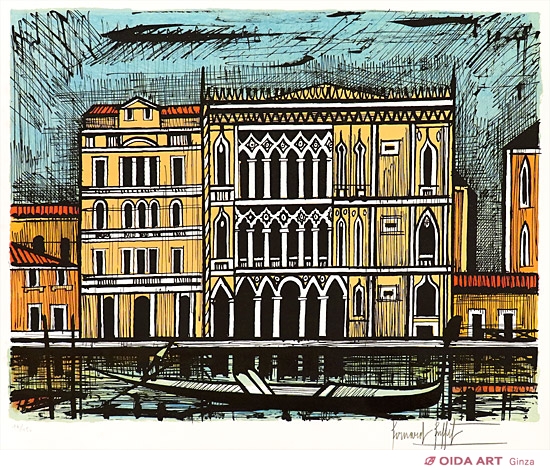 「ベニスシリーズ」は、1987年に発表されたビュッフェ人気の連作です。明るく軽快な印象の風景とゴシック風建築の宮殿がビュッフェ特有の強い線と色彩で鮮やかに表現されている作品です。