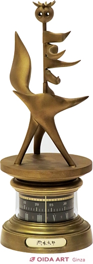 1988年に岐阜県岐阜市で開催された『ぎふ中部未来博覧会』。そのシンボルタワーとして「未来を拓く塔」が建設された記念に、同デザインのリズム時計が製作されました。時計部分は、ローマ数字の目盛が分針、アラビア数字の目盛が時針を差し、最上段の目盛が秒針として時を刻みます。