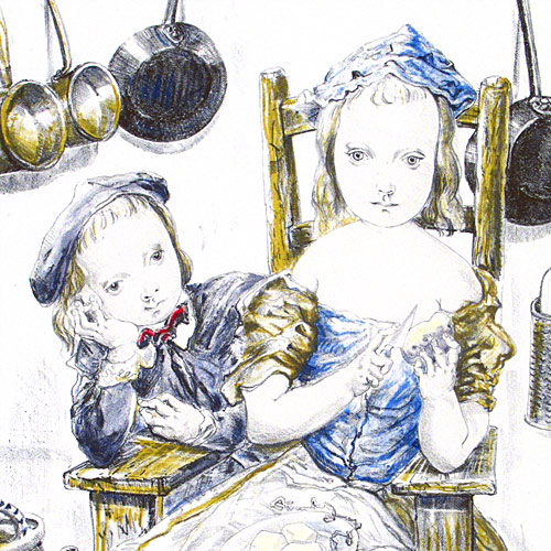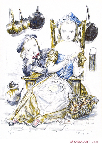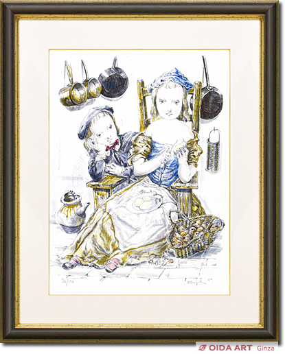 藤田の得意とするモチーフの一つである少女が、明るく、可愛らしく描かれている作品です。