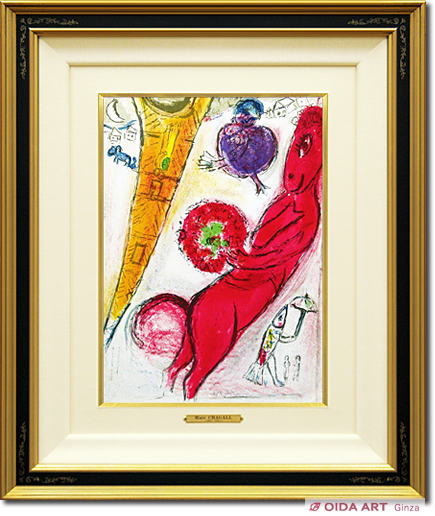 1954年マーグ画廊でパリをテーマにしたシャガール展が開催され、この展覧会用カタログ(「デリエール・ル・ミロワール誌」66-68号)に収録されたリトグラフ作品です。幻想的で迫力のある画面が魅力的です。