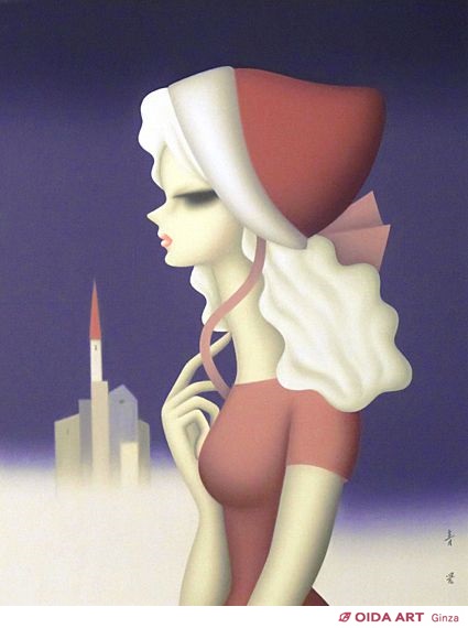 東郷青児の描く女性像は、いつの時代も変わらない美しさを持っています。淡くやわらかな色合いで諸所に散りばめられた鮮やかな色彩が女性の魅力をまた一層引き立てている美しい作品です。