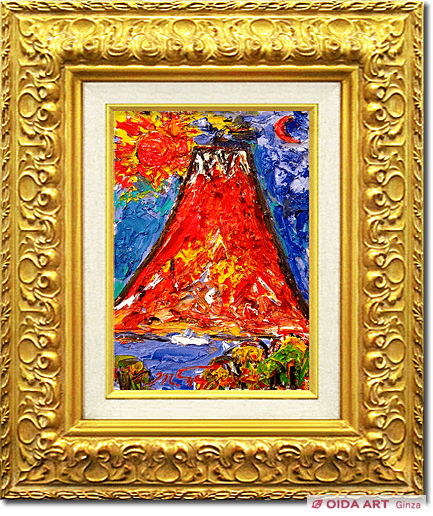 力強いタッチと色彩で富士の堂々とした姿を描いた、鈴木マサハルらしい迫力のある作品です。