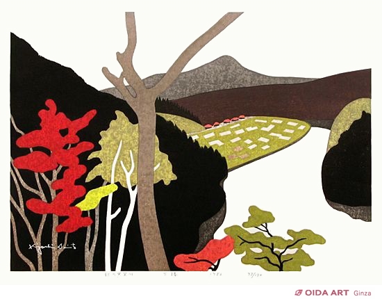斎藤清の生まれ故郷の福島県の会津地方を中心に流れる只見川を描いた作品。