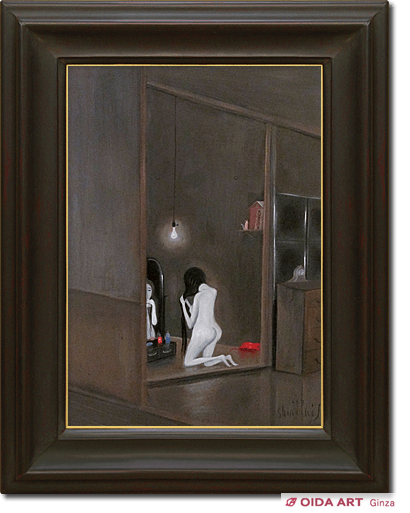 「人間は、哀しみを抱えて生きている。素朴にものを見つめると、この世に存在するということすら涙するほど愛しいものです。」と語る斉藤真一。鏡に向かって髪を梳く遊女からは、様々な深い感情が感じられます。