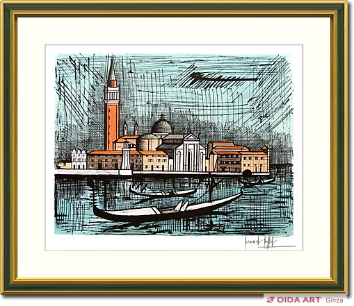 「ベニスシリーズ」は、1987年に発表されたビュッフェ人気の連作です。島のほとんどがサン・ジョルジョ・マッジョーレ教会となっており、高い塔が一際印象的な作品です。