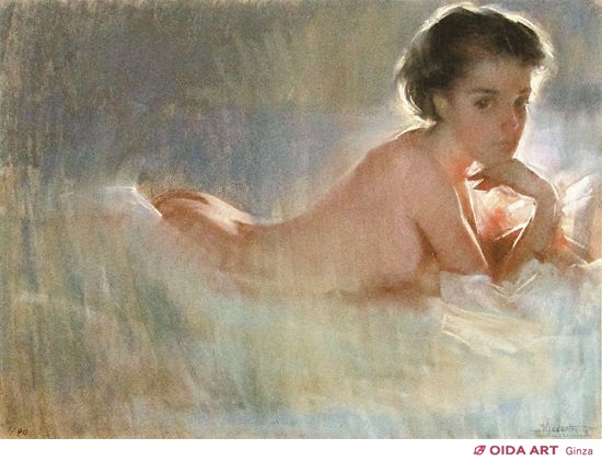 20世紀最後の印象派と賞されたリャド。柔らかな光を背に受けた女性の優しい表情が印象的な作品です。