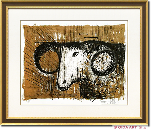 ビュッフェリトグラフ初期の羊を描いた作品。何度も重ねられた勢いのある線描が初期の作品らしく画面の厚みを生み出しています。