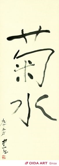 熊谷守一が95歳の時に書かれた書。緩やかでありながらしっかりとした筆遣いであり、文字からも熊谷らしい造形美が伝わる作品です。
