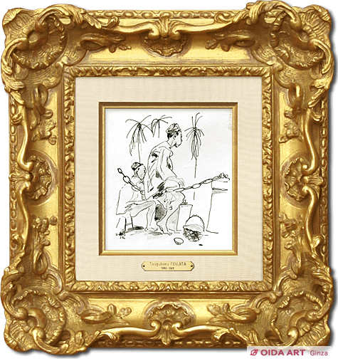 馬来(マレー)。フジタは1941年の戦時下、インドシナに日本からの文化使節として派遣され日本画展覧会に随行し、ハノイ、サイゴンなどまわっていて、その頃当地でみた子供をデッサンしたと思われる。