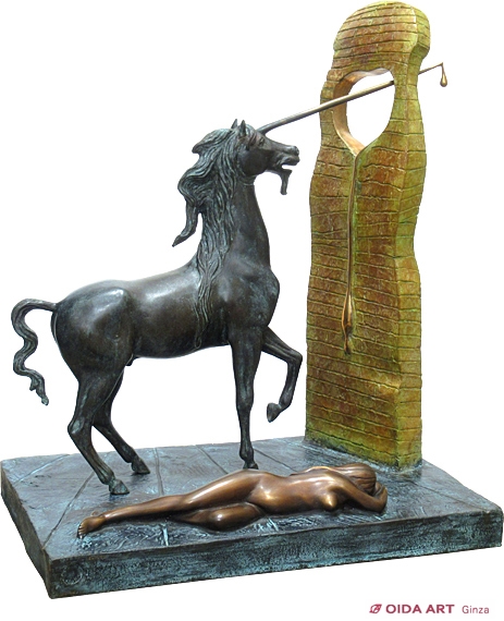 一角獣のかたわらに横たわる女性は、アナ・マリア(ダリの妹)をモデルにしたと言われています。