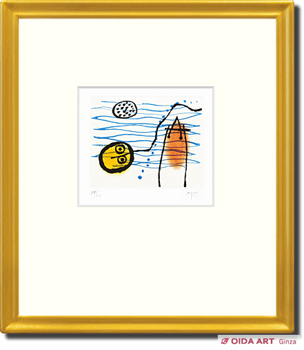 ミロの初期の連作、「オーロラの指輪」の一作品です。繊細な線描と明快な色彩で、ミロ特有の可愛らしさに溢れた作品です。