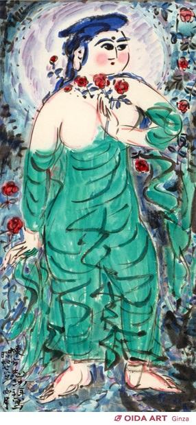棟方志功が持つフェニミムズムの世界観を、観世音菩薩の姿を通しみずみずしい色彩で表現された名品。