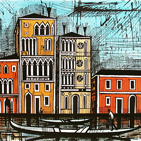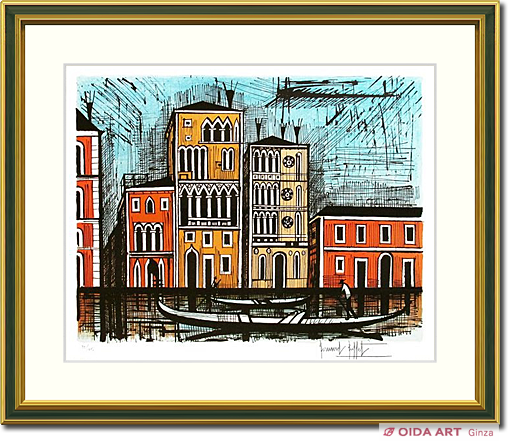 「ベニスシリーズ」は、1987年に発表されたビュッフェ人気の連作です。明るく軽快な印象の風景とゴシック風建築の宮殿がビュッフェ特有の強い線と色彩で鮮やかに表現されている作品です。