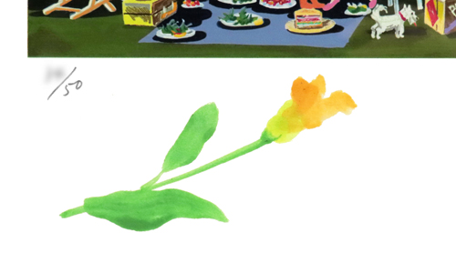 リマーク版とは、マージン下部の余白部分に自筆イラストが描かれているバージョンのことです。自筆イラストのため、同じ版画作品の中でも希少な作品となります。