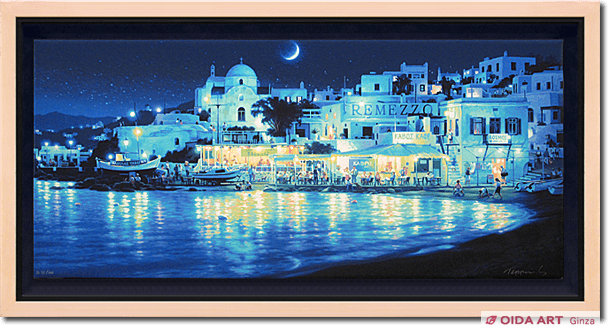 月の光に照らされた神秘的な夜の雰囲気が美しい作品です。眺めていると、あたかも静かな海辺をのんびりと歩いているかのような気持ちにさせてくれるようです。