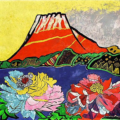 作品名:牡丹咲く富士(「片岡球子全版画(マリア書房)の表紙掲載の作品)